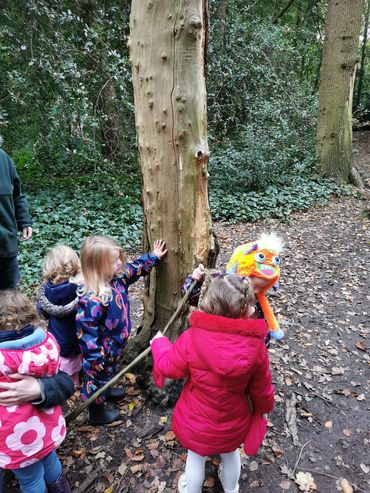 Exploring the world around us is an important part of child development. Being supported at a pre school session in a wooded area offers a wealth of opportunities not available elsewhere. Sessions are based on a story theme with activities set at a quick pace to keep the youngest children engaged.